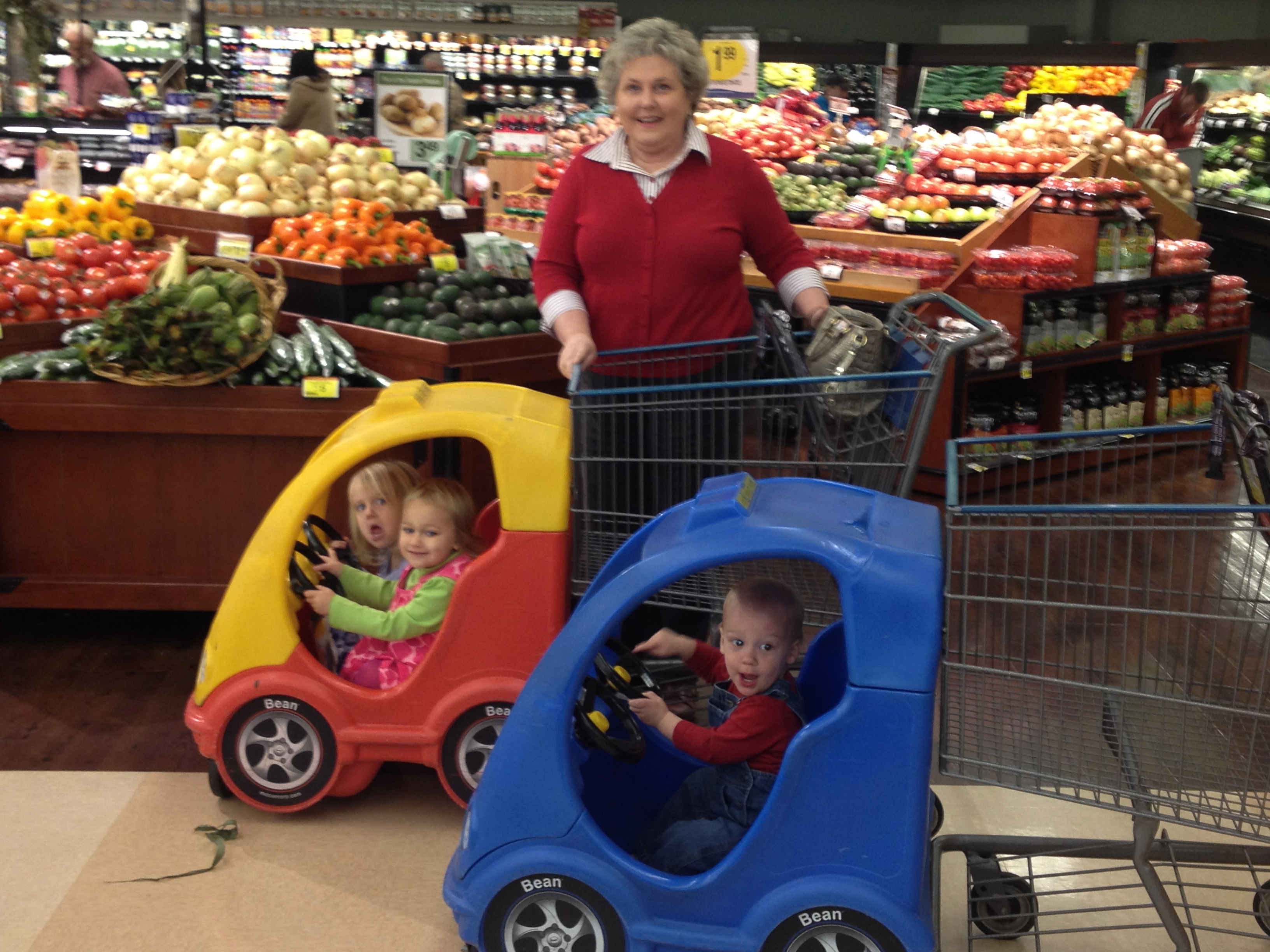 I walked into a Kroger supermarket yesterday a very lucky man. I was not alone as so many people are these days. No, I had with me the love of my life who has been by my side for 42 years. Seeing that written on a page is a little frightening when I realize the blazing speed with which those years, each one made up of unique days, passed by. I am a lucky man indeed. Not only was I in the company of my soul mate, there were three little delightful and adoring faces by our side as well. They are the ones you see in the picture.